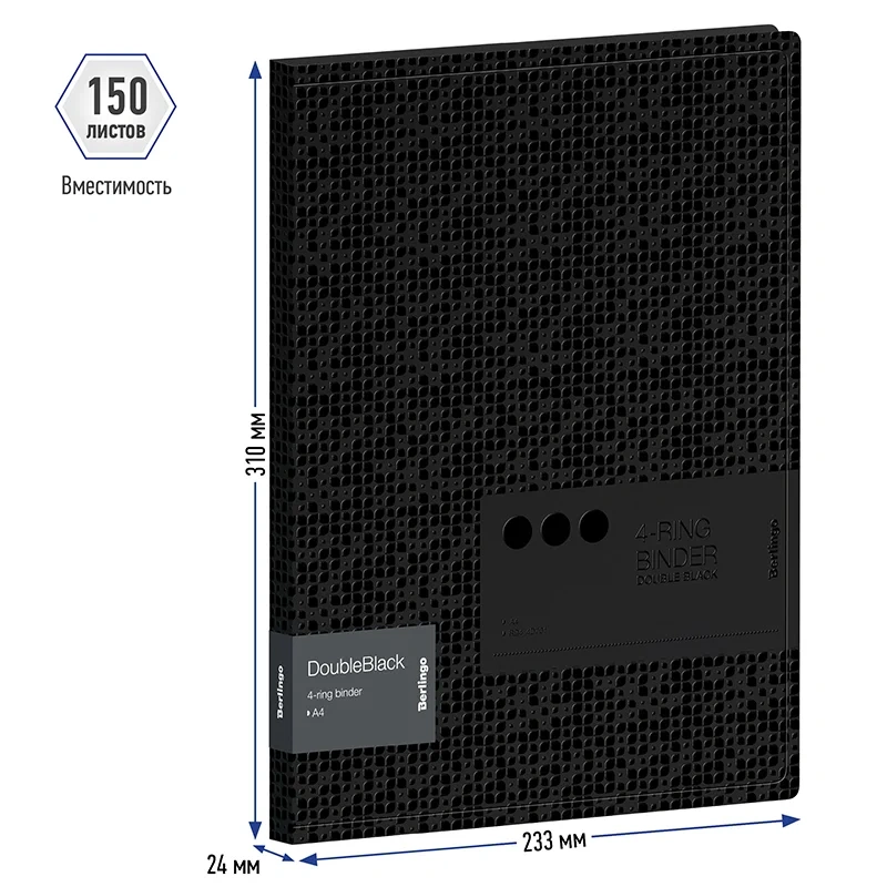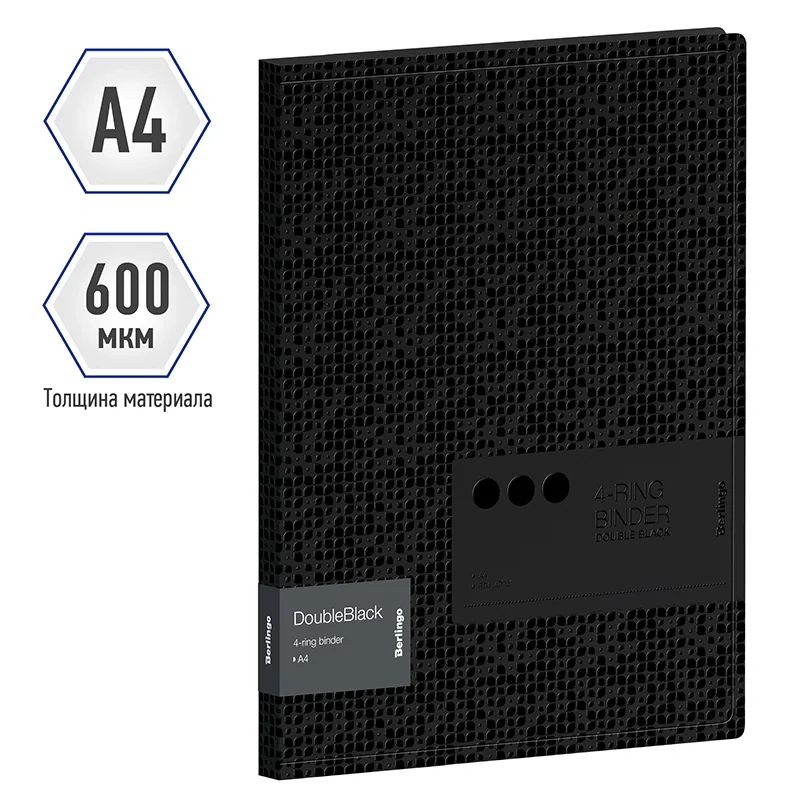 Папка на 4 кольцах Berlingo 'DoubleBlack', 24мм, 600мкм, черная, D-кольца, с внутр. карманом, с рису