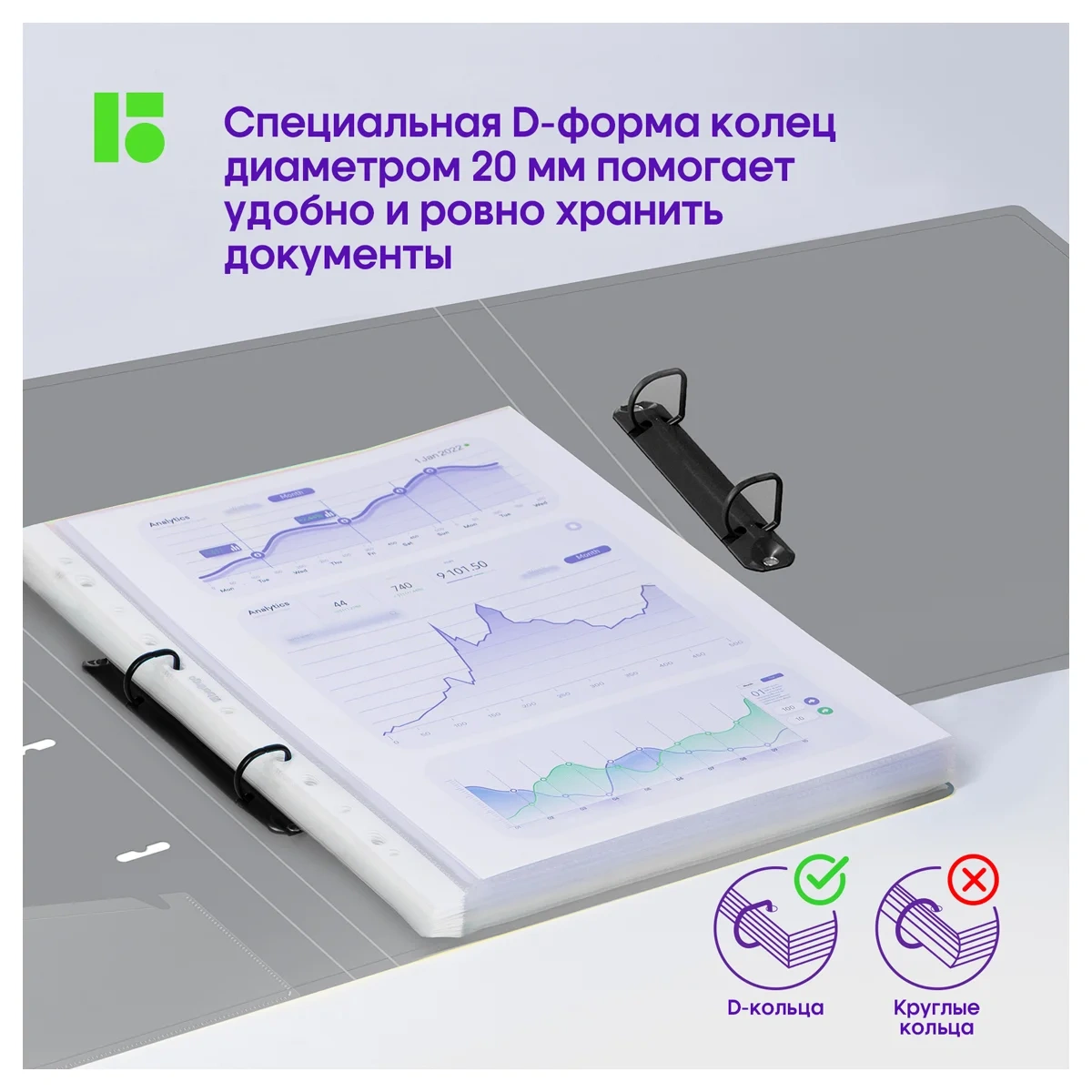 Папка на 2 кольцах Berlingo 'Soft Touch', 40мм, 700мкм, серая, D-кольца, с внутр. карманом