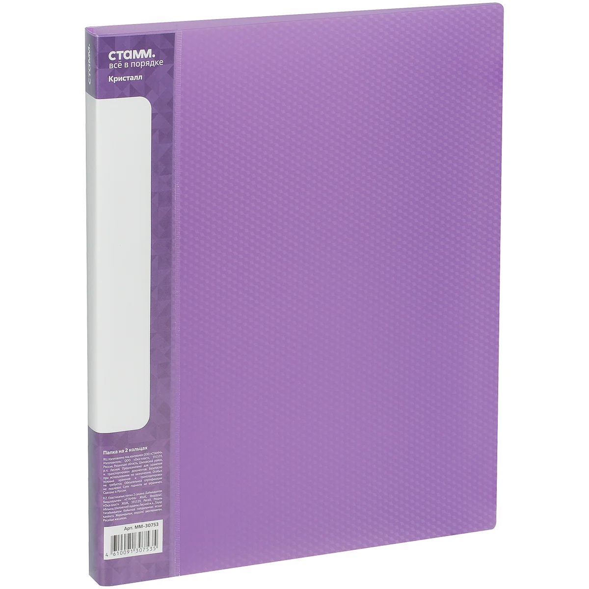 Папка на 2 кольцах СТАММ 'Кристалл' А4, 25мм, 700мкм, пластик, фиолетовая