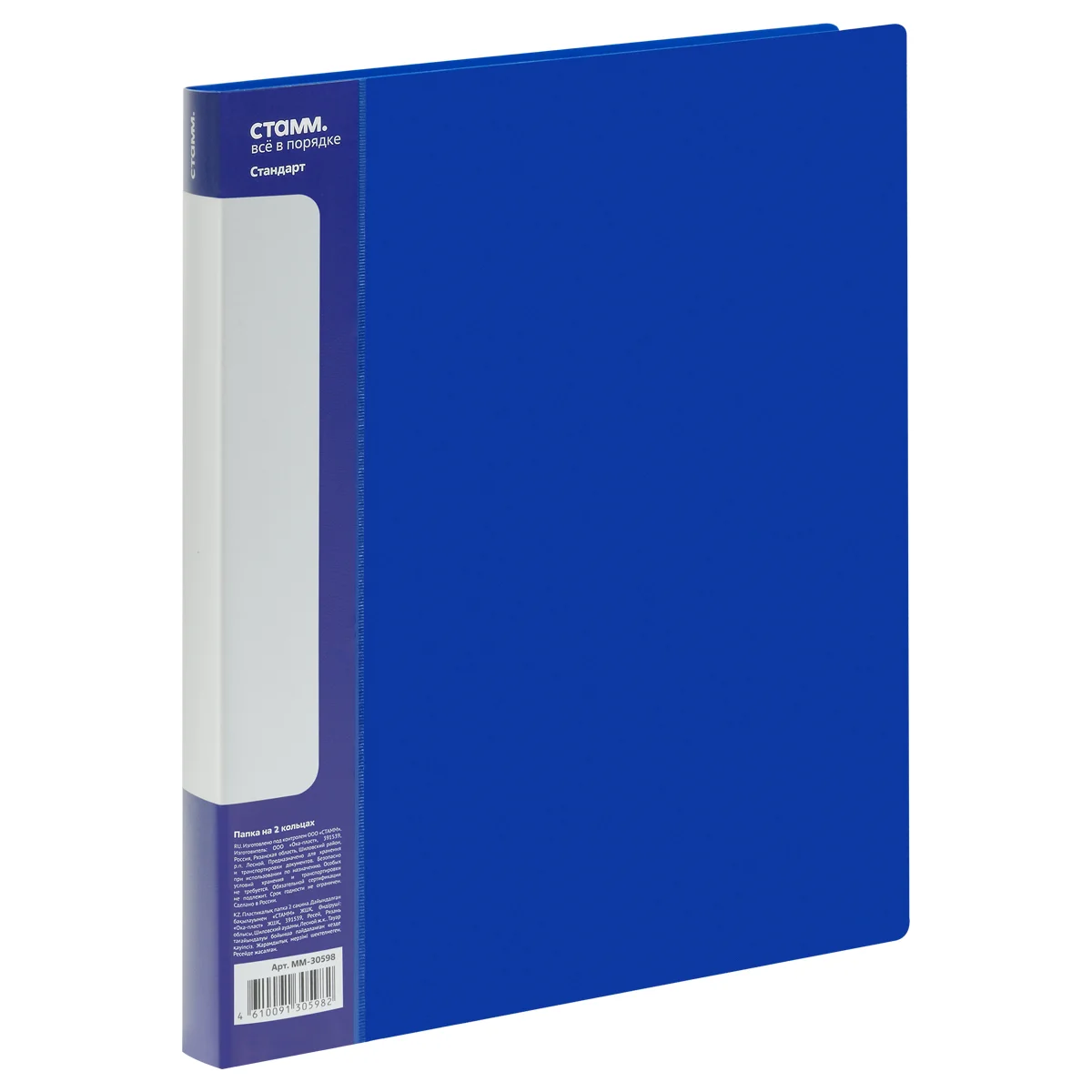 Папка на 2 кольцах СТАММ 'Стандарт' А4, 40мм, 700мкм, пластик, синяя