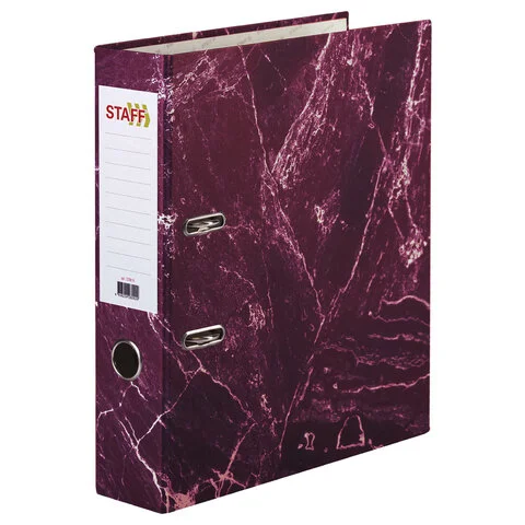 Папка-регистратор STAFF БЮДЖЕТ с мраморным покрытием, 70 мм, без уголка, красная, 229619