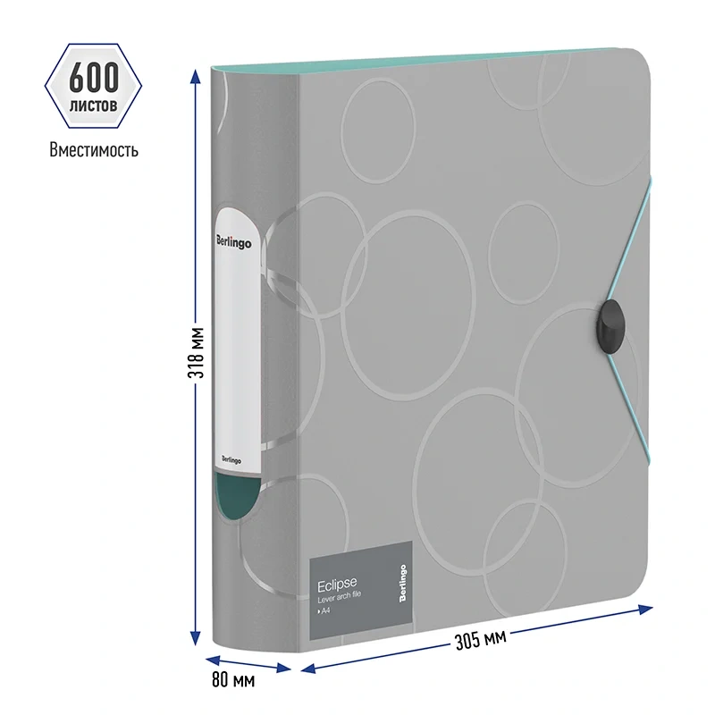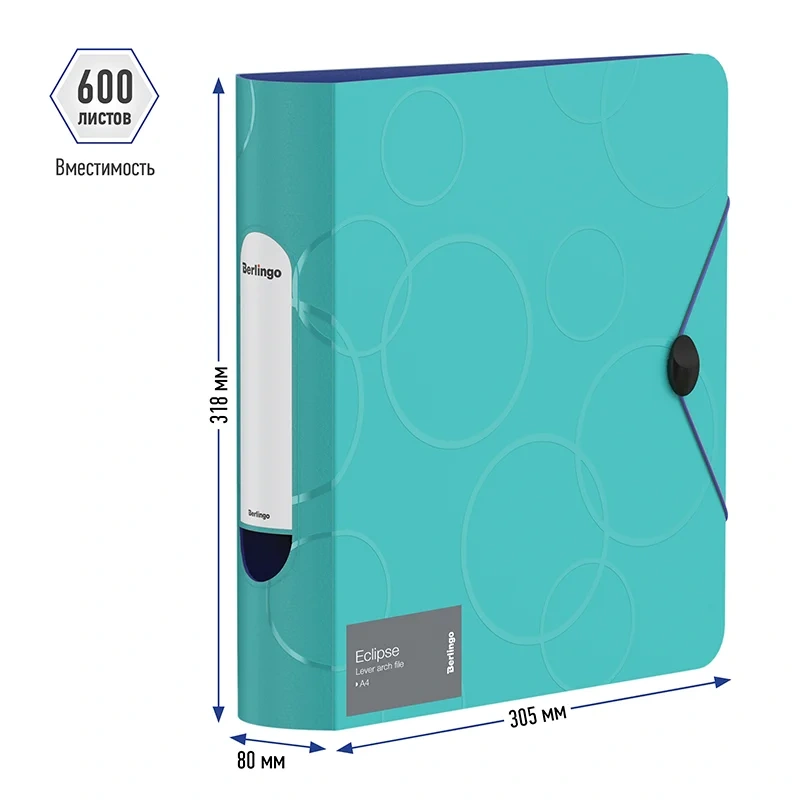 Папка-регистратор Berlingo 'Eclipse', 80мм, 2500мкм, пластик (полифом), на резинке, бирюзовая