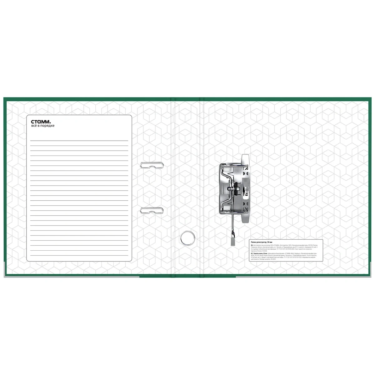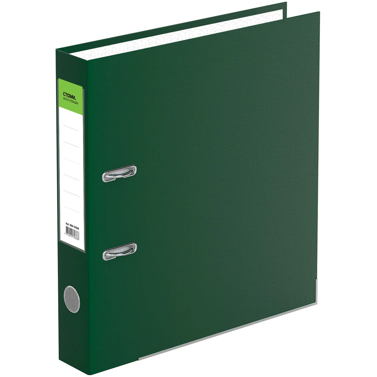Папка-регистратор СТАММ 'Бизнес', 50мм, бумвинил, с карм. на корешке, нижний метал. кант, зеленая