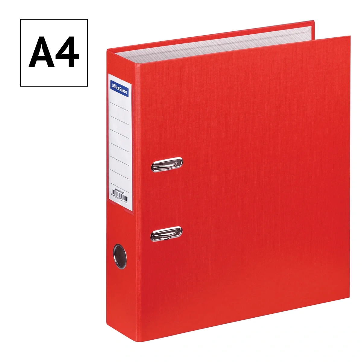 Папка-регистратор OfficeSpace, 70мм, ПВХ, с карманом на корешке, белая