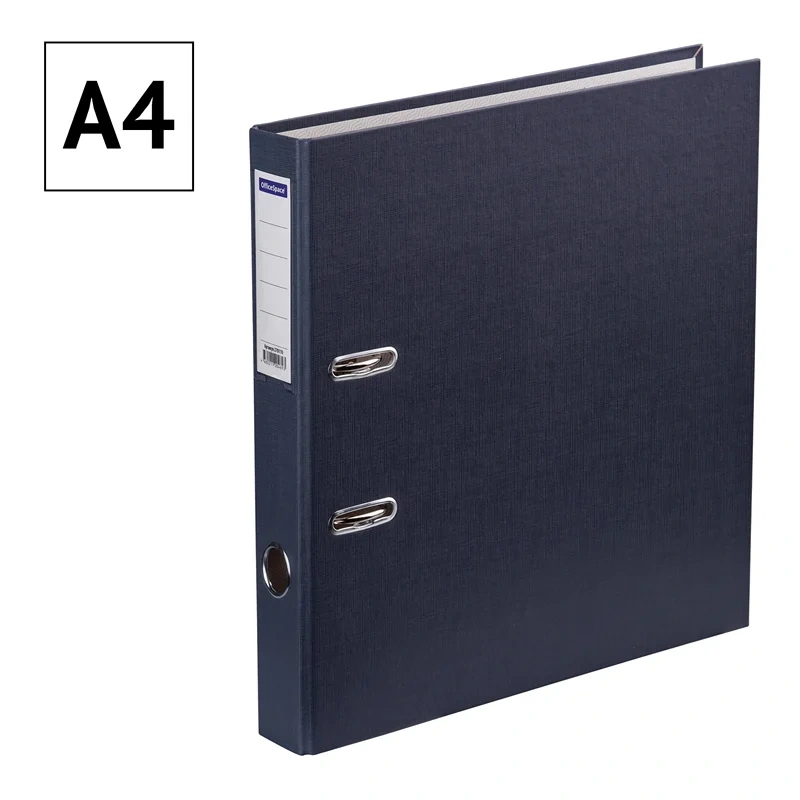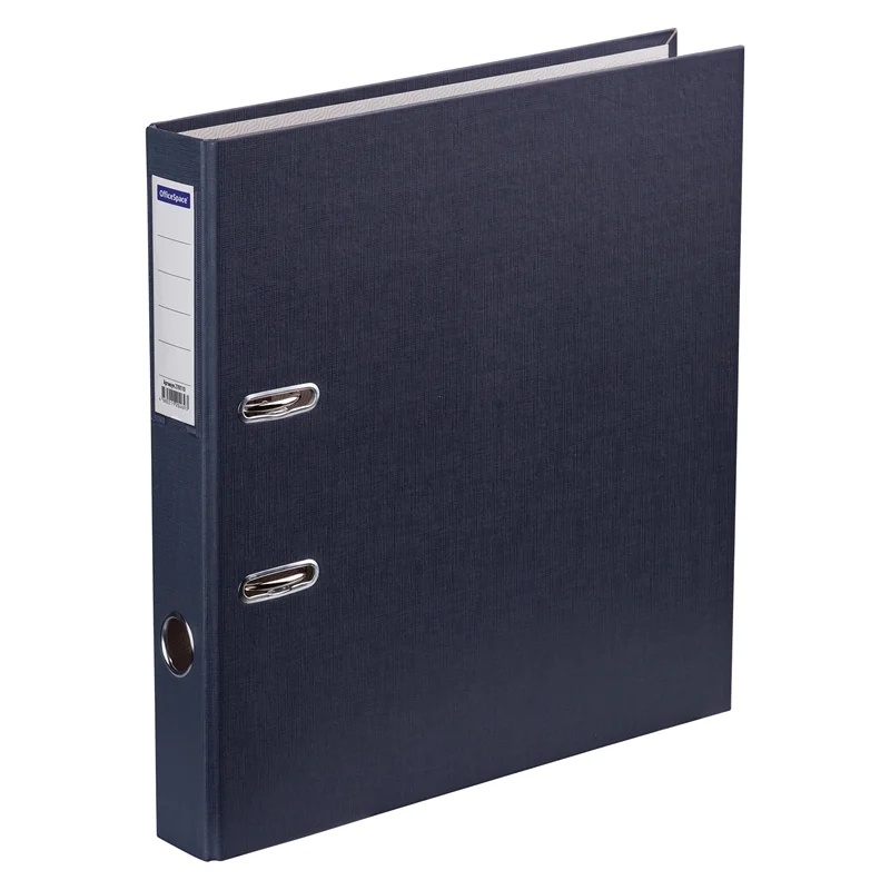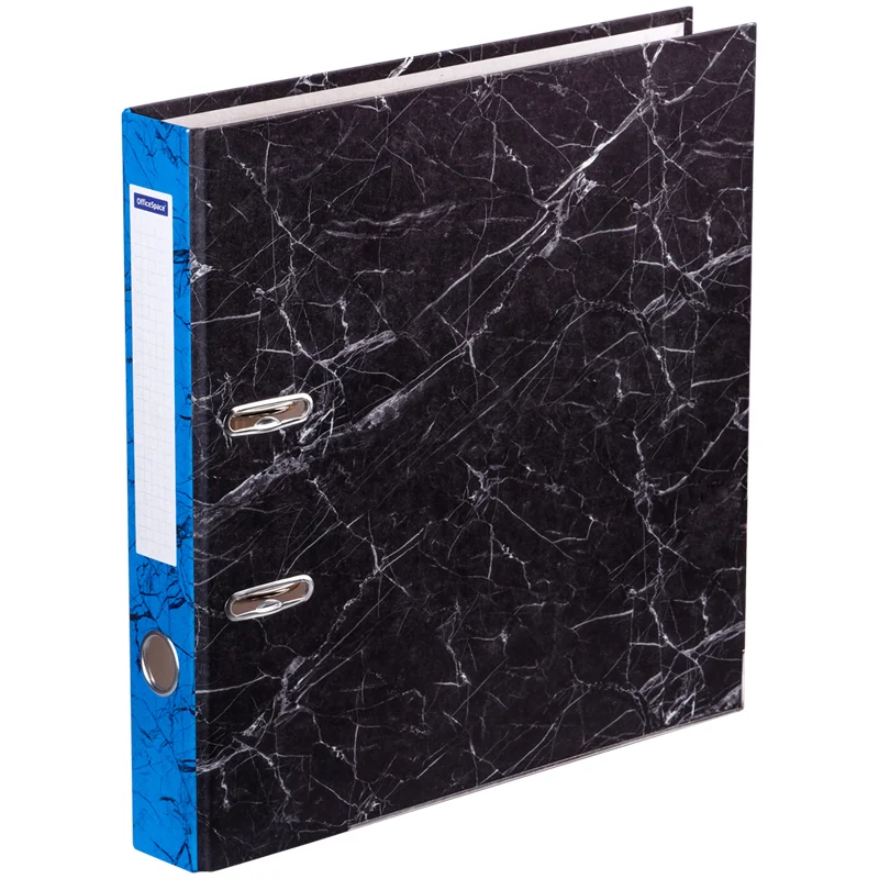 Папка-регистратор А4 Officespace черный мрамор, синий корешок, 50мм, с металлическим уголком