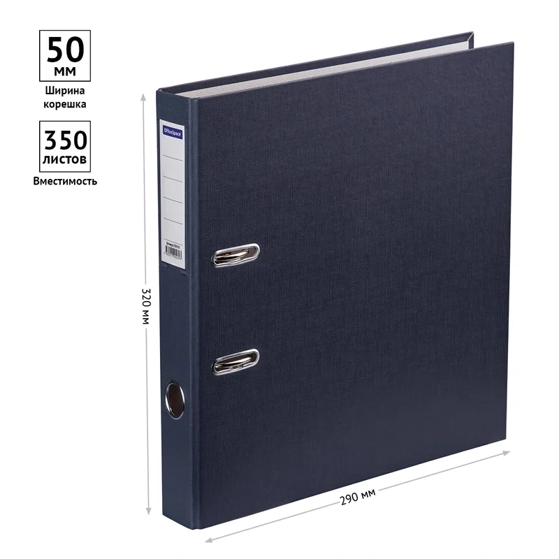 Папка-регистратор СТАММ 'Стандарт', 50мм, бумвинил, с карманом на корешке, синяя