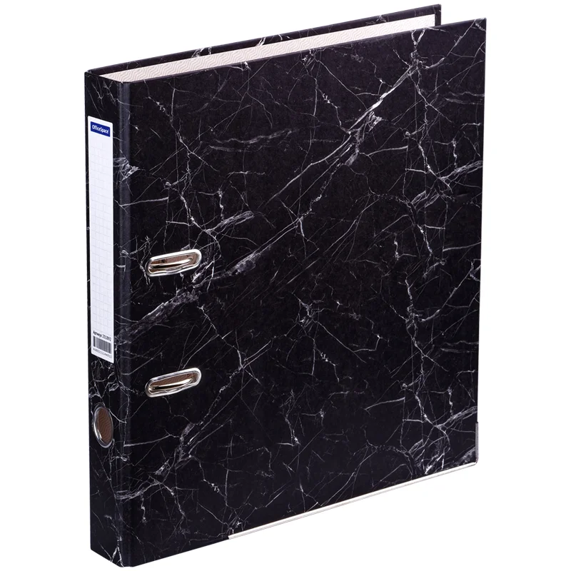 Папка-регистратор А4 Officespace черный мрамор, 50 мм, с металлическим уголком