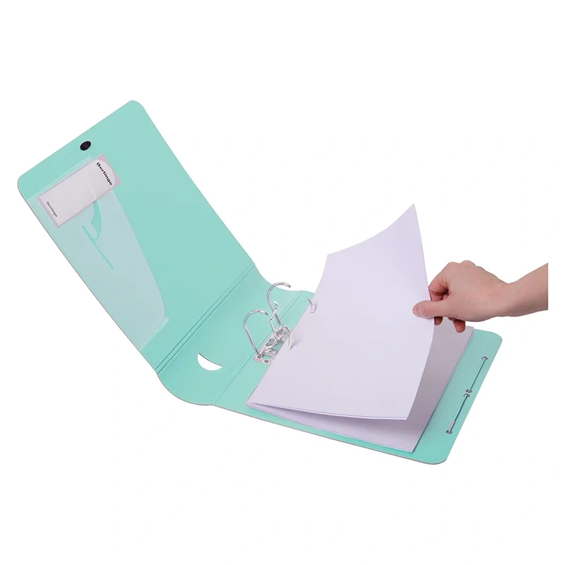 Папка-регистратор А4 Officespace черный мрамор, зеленый корешок, 50мм, с металлическим уголком