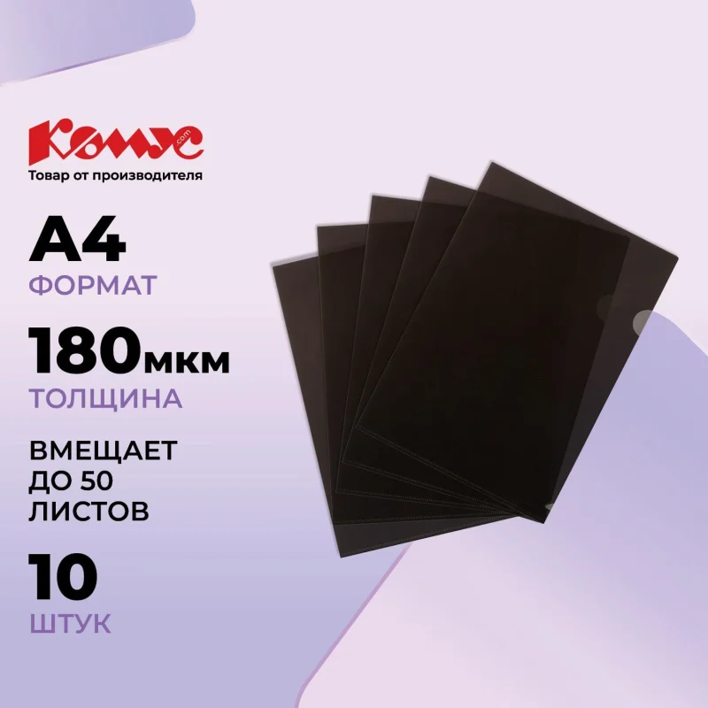 Папки-уголки Папка уголок Папка-уголок глянцевый КОМУС А4 Line 180мкм черный, 10 шт/уп