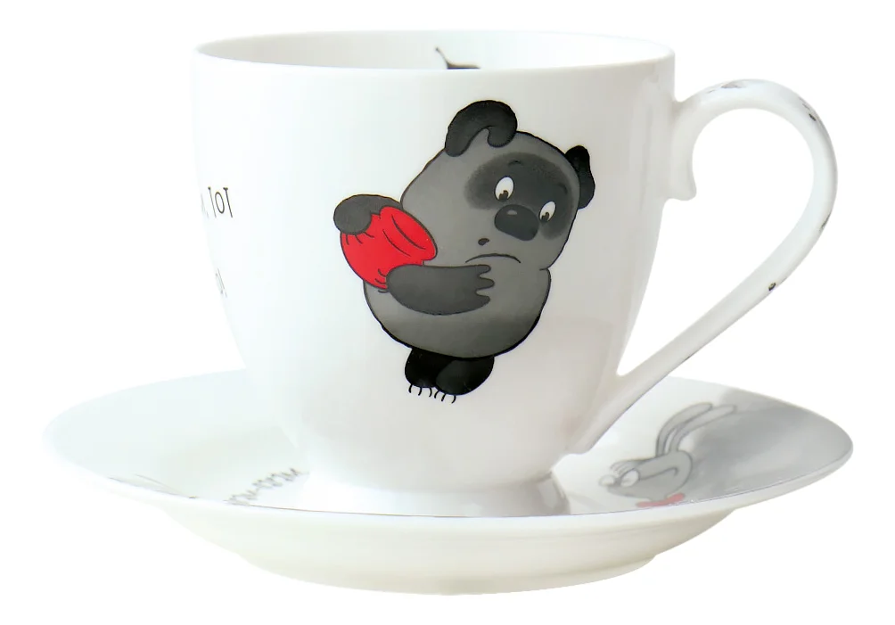 Пара чайная Quinsberry Винни Пух, 440 мл состоит из чашки и блюдца. На чашке написана известная всем фраза из мультфильма Кто ходит в гости по утрам, тот поступает мудро!, на блюдце —продолжение Тарам-парам, тарам-парам. На то оно и утро!. Набор изготовлен из высококачественного материала, имеет небольшой вес. Материал не впитывает запахи, не тускнеет со временем, легко моется и не окрашивается от пищи. Чайная пара подходит для чая, кофе и других напитков. Набор в подарочной упаковке станет желанным подарком для взрослого и ребенка на любой праздник.