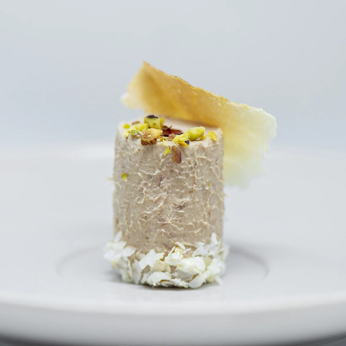 Сочетание томлёного утиного мяса породы Mulard, сливочной фуа-гра и утиного жира. Эта комбинация подарит вам неповторимое гастрономическое удовольствие. Рекомендуем дополнить парфе теплым багетом, кисло-сладкими фруктовыми или ягодными джемами, соусами и желе.