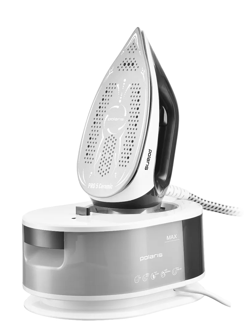 Покрытие подошвы PRO 5 Ceramic. Компактный размер - идеально для хранения. Электронное управление на ручке. Мощность 2600 Вт. Мощность постоянного пара 120 г/мин. Мощность парового удара 400 г/мин. Съемный резервуар для воды 1,3 л. Давление 7 бар. Автоотключение. Удобный замок для переноски. Удобная фиксация парового шланга и шнура на базе. Гарантия 3 года. Способен разглаживать стойкие складки на разных типах тканей. Подошва с керамическим покрытием PRO 5 Ceramic обеспечивает гладкое скольжение. Она без труда очищается от загрязнений и устойчива к появлению царапин. Технология Smart Heat отвечает за равномерное распределение тепла. Парогенератор Polaris PSS 4007K оснащен съемным резервуар для воды емкостью 1.3 л. Замок, фиксаторы для шнура и шланга на базе повышают удобство переноски прибора. Для повышения безопасности реализована технология автоматического отключения.