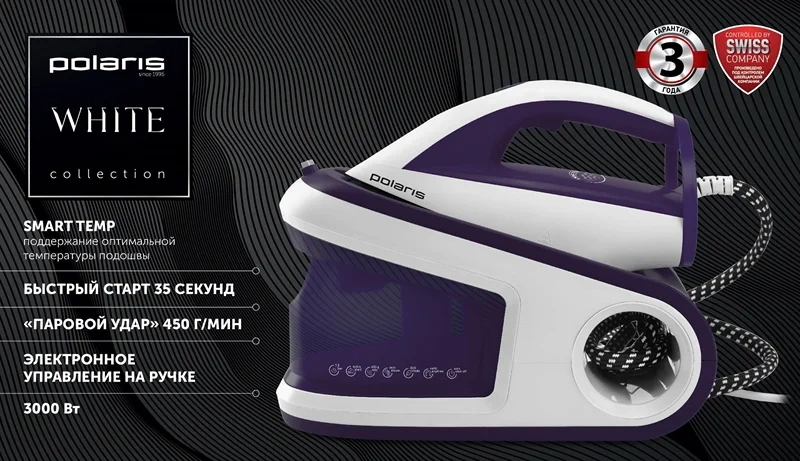 Технология Smart Temp - поддержание оптимальной температуры подошвы. Можно гладить любые ткани без риска испортить материалВремя подготовки к работе: 35 секунд.Электронное управление на ручке.Мощность 3000Вт.Мощность постоянного пара 130г/мин.Мощность парового удара 450г/мин.Съемный резервуар для воды 1л.Давление 7,5 бар.Электронное управление на ручке.Автоотключение.Удобный замок для переноски.Удобная фиксация парового шланга и шнура на базе.Гарантия 3 года.