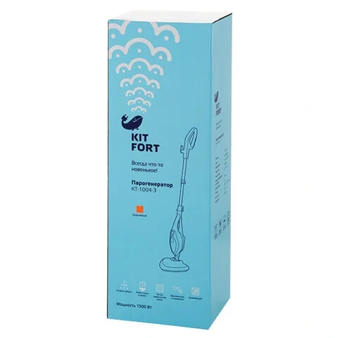 Паровая швабра KITFORT KT-1004-3, 1500 Вт, 1 бар, объем 0,35 л, оранжевая