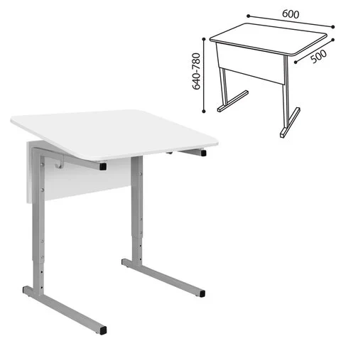 Парта школьная Дэми СУТ.54-01 600х500х640-780мм, рост 4-6, серый каркас, ЛДСП белая, 1-местный