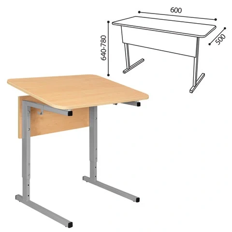 Парта школьная Дэми СУТ.54-01 600х500х640-780мм, рост 4-6, серый каркас, ЛДСП клён, 1-местный