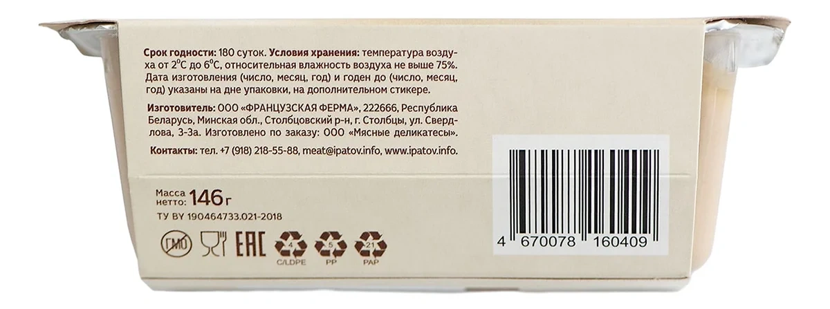 Отзывы о «Паштет французский Ипатов с фуа-гра, 146г»