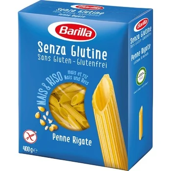 Итальянская паста Barilla Пенне Ригате без глютена – это макароны, для производства которых вместо традиционной муки из твёрдых сортов пшеницы используется смесь из муки кукурузы и риса. Отличный выбор для тех, кто соблюдает соответствующую диету или просто хочет попробовать что-то новое! Паста Barilla Penne Rigate без глютена превосходно сочетается с мясом, рыбой, птицей, морепродуктами и овощами. Она выполнена в виде полых трубочек с косым срезом, напоминающим наконечники старинных ручек, за что эти макароны ещё называют перьями. Соусы проникают внутрь пасты, что придаёт блюду более сложный и многогранный вкус. Кроме того, такая форма делает Пенне Ригате ещё и удачным вариантом для запекания с сыром и сливками.