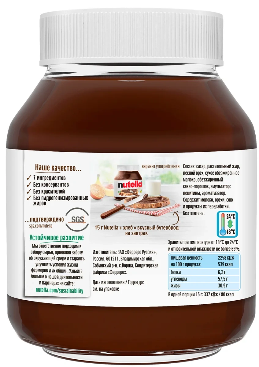 Благодаря уникальному рецепту, ореховая паста Нутелла обладает неповторимым вкусом и кремовой текстурой. В состав Нутелла входит 7 тщательно отобранных ингредиентов, а при ее производстве не используются консерванты и красители.