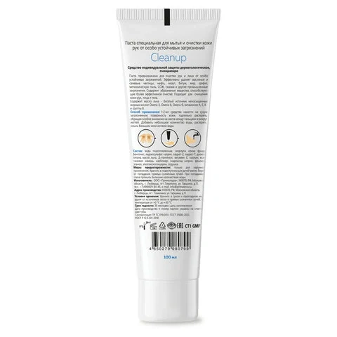 сильных загрязнений, очищению пор, ускорению процессов регенерации и восстановлению клеток кожи. Паста содержит регенерирующие и увлажняющие компоненты: Д-пантенол, витамин Е, масло виноградной косточки. Также в пасте