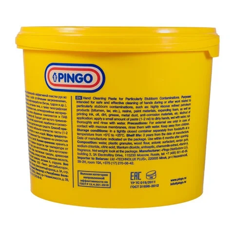 Применение: смочите руки водой, возьмите 2–3 г пасты (шарик диаметром примерно 2 см) и с легким усилием разотрите по поверхности рук до устранения загрязнений, затем смойте под струей воды. Грязь эффективно удаляется даже после однократного применения пасты.