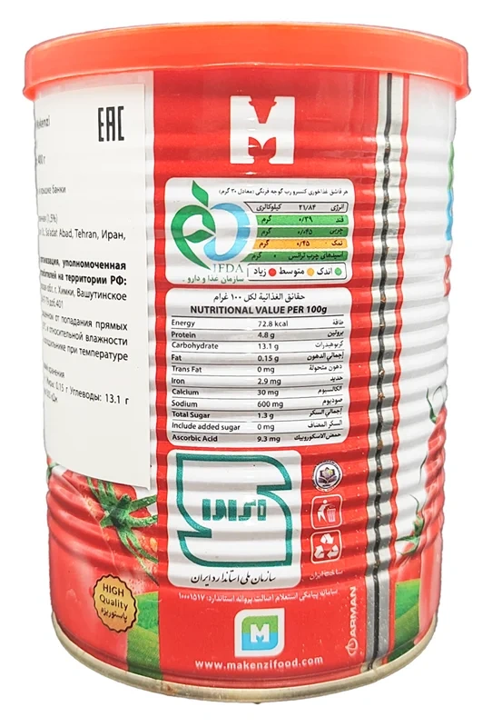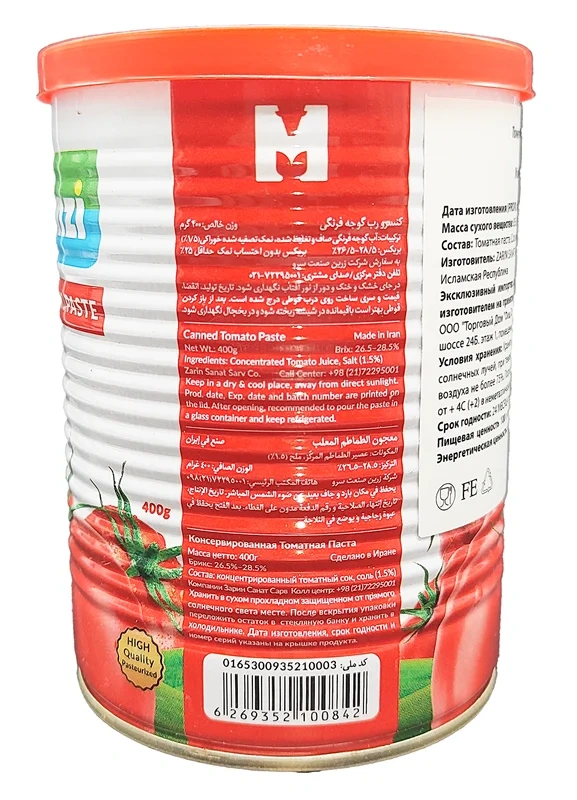 Изготовлена из высококачественных помидоров, выращенных без использования химических удобрений и пестицидов. В настоящее время иранская томатная паста обретает все большую популярность среди потребителей. Это связано с натуральным составом, изысканным и пряным вкусом. В основе любой иранской томатной пасты лежит сырье, прошедшее строгий входной контроль, без добавления овощного и фруктового пюре, а также полное отсутствие красителей и ароматизаторов. Продукт имеет насыщенный вкус, запах и цвет, которые характерны для натурального томатного сырья без каких-либо вторичных обработок. Никаких добавок и химического синтеза при взращивании урожая не применяется. Эта паста отличается своей плотной консистенцией и насыщенным вкусом, который напоминает свежие, зрелые помидоры. Изготовитель не использует в своих продуктах искусственные ароматизаторы и красители, поэтому томатная паста имеет натуральный цвет и аромат. Также она не содержит консервантов, что делает ее более полезной и безопасной для здоровья.