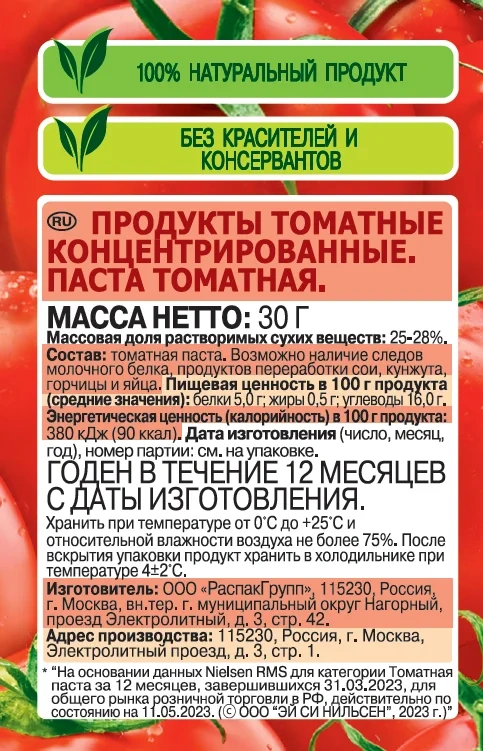 Гармоничный продукт с оригинальным вкусом, насыщенным цветом и ароматом, густой консистенцией, полностью натуральный состав. Натуральный продукт, без красителей и консервантов. Томатная паста содержит даже больше ликопина (природный антиоксидант, полезен для сердца, снижает холестерин), чем сами томаты благодаря термообработке. Лучший соус к горячим блюдам, основа для супов, и консервации.