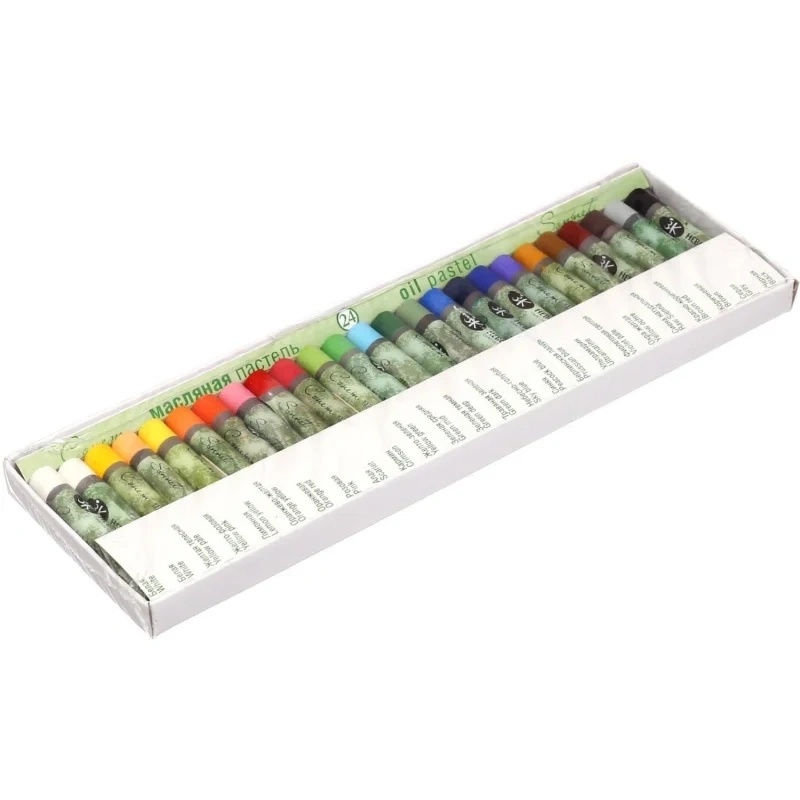 Масляная пастель Сонет круглая, 24 цвета. Предназначена для живописи начинающих и профессиональных художников. Обладает яркостью и интенсивностью цвета, хорошей кроющей способностью и мягкостью. Легко наносится на цветную бумагу, картон, дерево и керамику. Удобна для работы на открытом воздухе, не требует закрепления, в отличие от сухой пастели. Упаковка: картонная коробка. Размер упаковки: 230×15×75 мм. Размер пастели: 60×8.5 мм