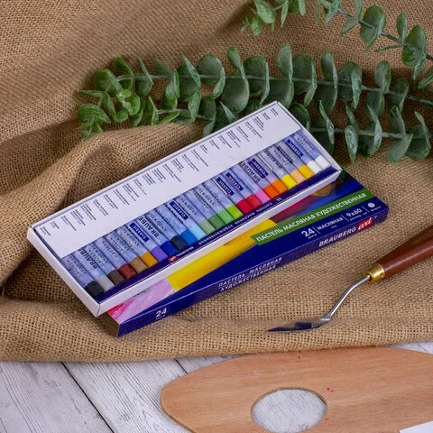 Масляная пастель легко ложится на различные фактуры цветной бумаги, бумагу для рисования, холст, картон, дерево, керамику. 24 цвета позволяют передать цветовую палитру. Высокое качество пигментов и связующего обеспечивает низкий расход материала, хорошую укрывистость и яркость цвета. Пастель имеет вид брусков с круглым сечением, обёрнутых в бумажную обёртку. Она позволяет сохранять руки и одежду чистыми. Не токсична и безопасна при использовании. Благодаря компактной упаковке удобно брать с собой.