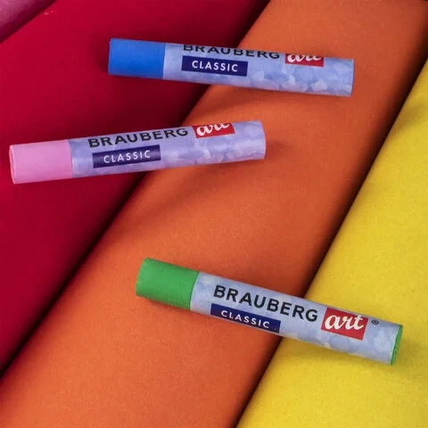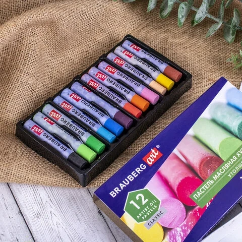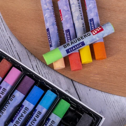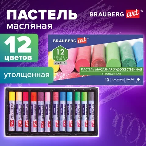 Пастель масляная художественная BRAUBERG ART 'CLASSIC', УТОЛЩЕННАЯ, 12 цветов, круглое сечение, 1814