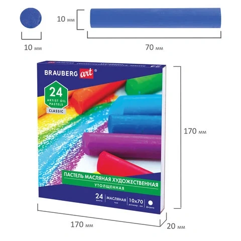 Пастель масляная художественная BRAUBERG ART 'CLASSIC', УТОЛЩЕННАЯ, 24 цвета, круглое сечение, 18145