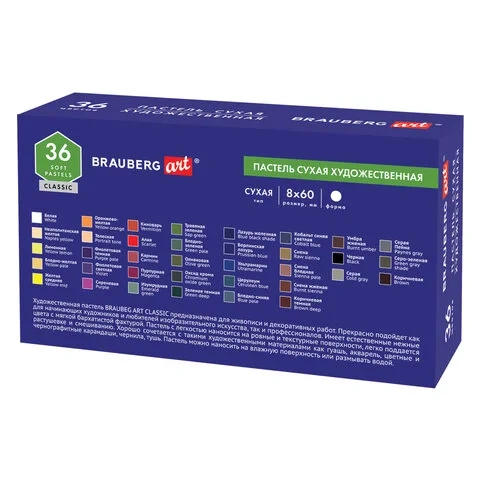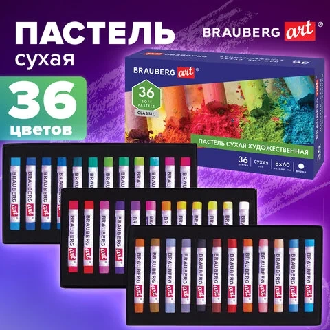 Пастель сухая художественная BRAUBERG ART 'CLASSIC', 36 цветов, круглое сечение, 181455