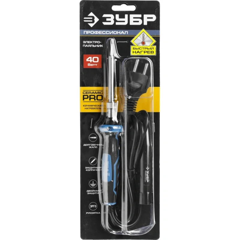 Паяльник ЗУБР Ceramic PRO, 40Вт, конус, керамич.нагреватель (55413–40)
