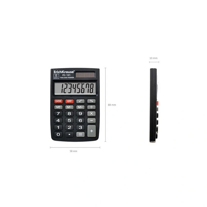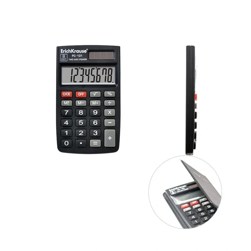 Удобный и компактный карманный калькулятор не занимает много места, прост в использовании и всегда будет у вас под рукой, позволяя быстро выполнить расчет. 8-разрядный