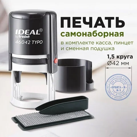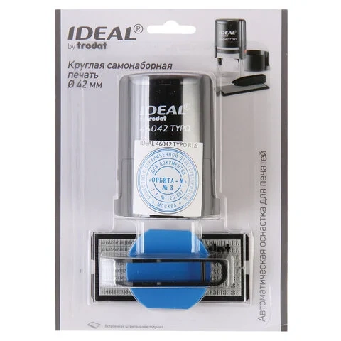 Печать самонаборная 1,5-круга, оттиск D=42 синий,TRODAT IDEAL 46042DB-R1,5, крышка, КАССА В КОМПЛЕКТ