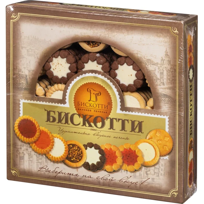 Попробуйте печенье «Бискотти Ассорти», выберите для себя самый любимый вариант или наслаждайтесь удивительным многообразием великолепных начинок на ароматном печенье.