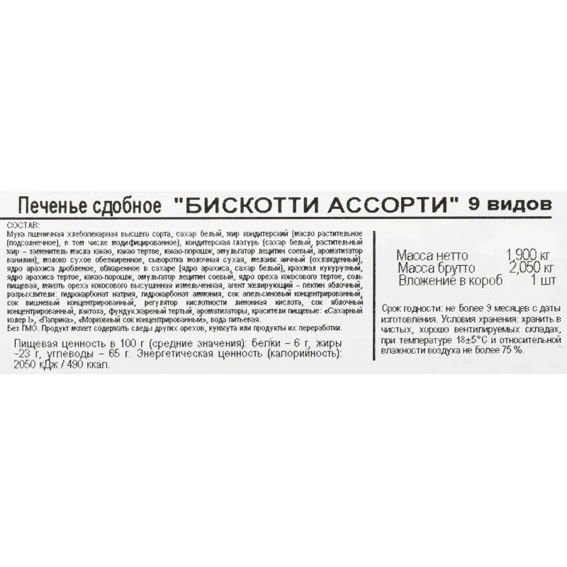 Печенье Бискотти ассорти 9 видов, 1.9кг
