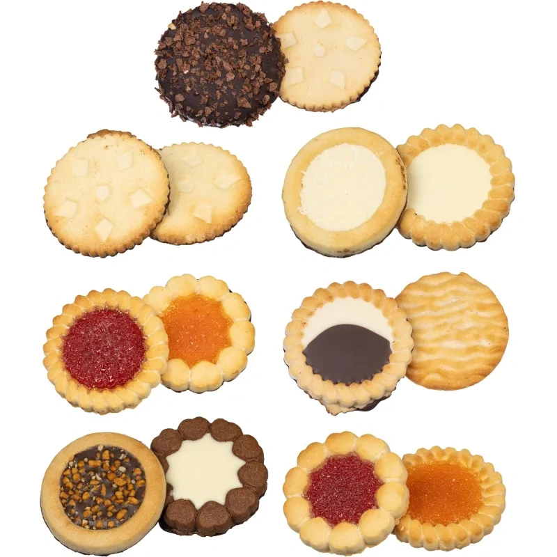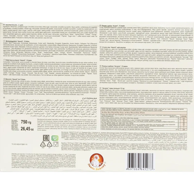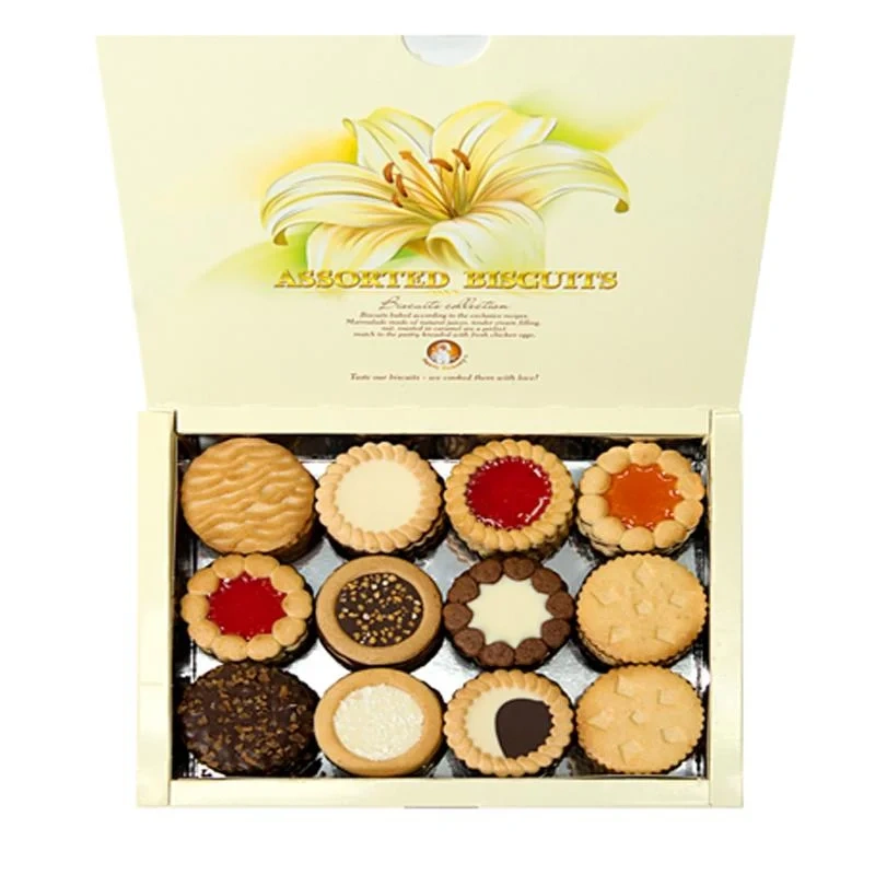 Ассорти Бискотти включает разнообразие яркого, красивого, вкуснейшего печенья. Это лучший вариант для знакомства с множеством достойных видов печенья Бискотти, способный подарить приятные впечатление и настоящее удовольствие от наслаждения прекрасным лакомством. Презентабельная фирменная упаковка с 12 видами печенья внесёт праздничную атмосферу в домашнее чаепитие, а также послужит жестом внимания, благодарности, любви и заботы к дорогим и близким людям. Ассорти включает печенье Коста Браво апельсин и вишня (сдобное печенье с апельсиновым и вишнёвым мармеладом, покрытое шоколадной глазурью), разнообразные бискотти: с апельсиновым и вишнёвым мармеладом, кремом, орехами, кокосом, и шоколадом, а также рассыпчатое печенье Нежное и сдобное Неробьянко с шоколадной глазурью.