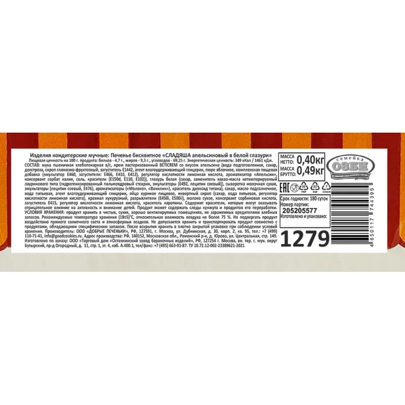 Печенье бисквитное Семейка ОЗБИ Сладяша апельс. в белой глазури TV, 400г