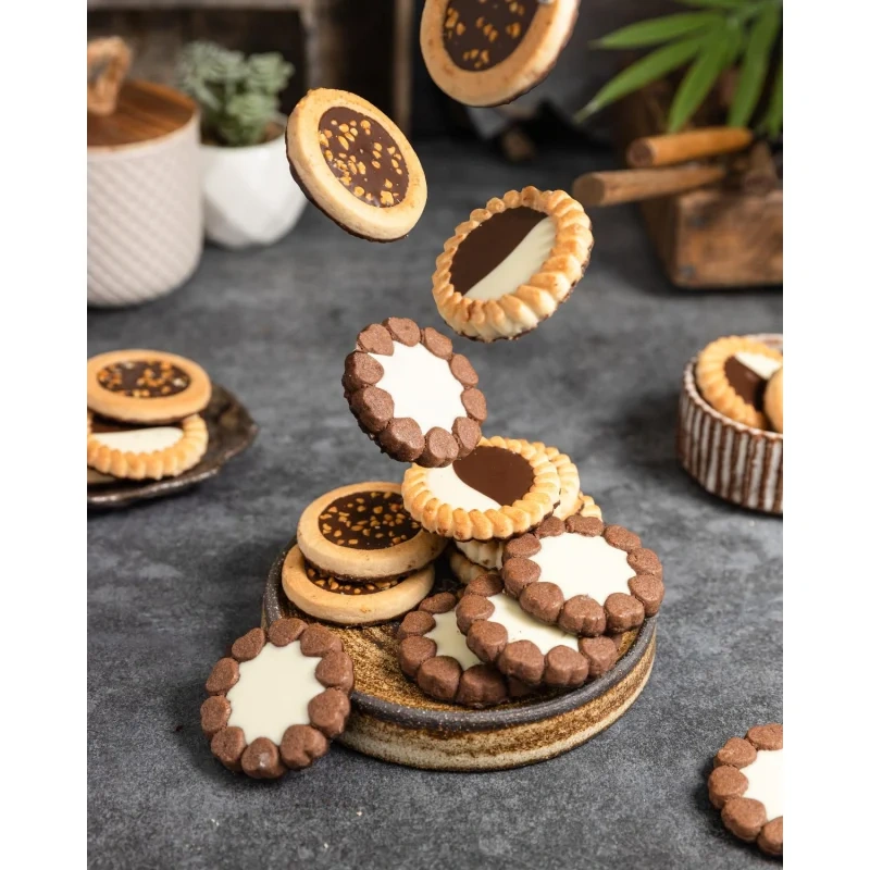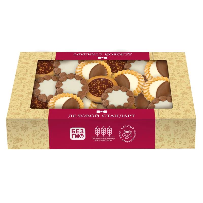 Сдобное печенье «Деловой Стандарт» — это ассорти из трёх видов великолепного рассыпчатого печенья с ассорти начинок: молочная, шоколадно-молочная и шоколадно-ореховая.