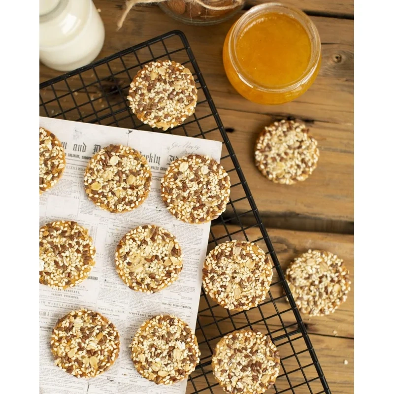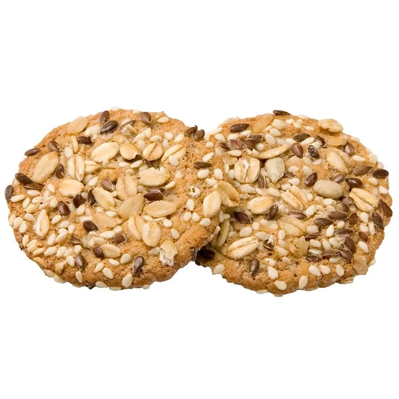 Полезное печенье для активных людей содержит в своём составе овсяные хлопья, которые дают заряд бодрости и сил, снижают уровень холестерина, способствуют снижению лишнего веса; кунжут, который содержит белки, витамины группы, А, Е, В, кальций, магний, цинк, полинасыщенные кислоты, отвечающие за снижение холестерина в крови; семена льна — кладезь полиненасыщенных кислот (Омега 3, Омега 6, Омега 9), которые повышают иммунитет и жизненный тонус, содержат витамины группы F, А, Е и В.