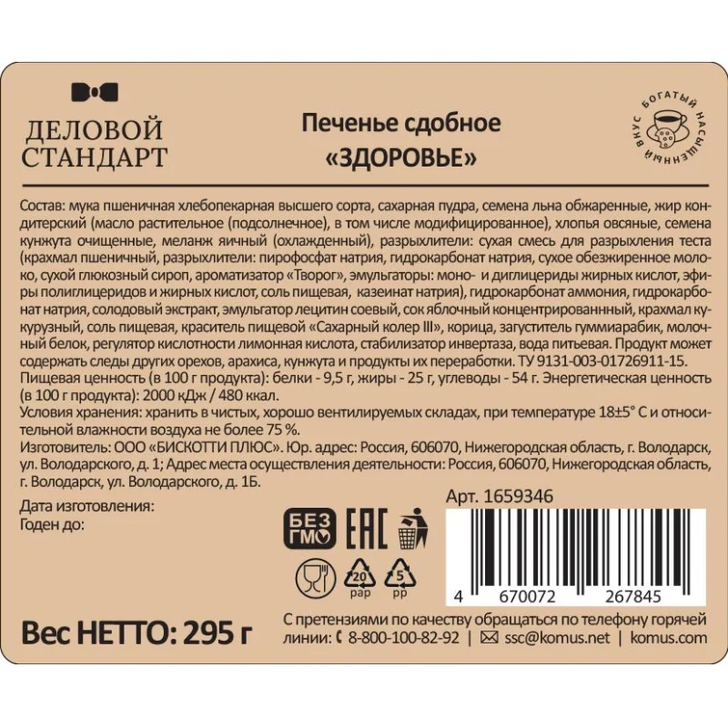 Печенье сдобное Деловой Стандарт Здоровье 295 г