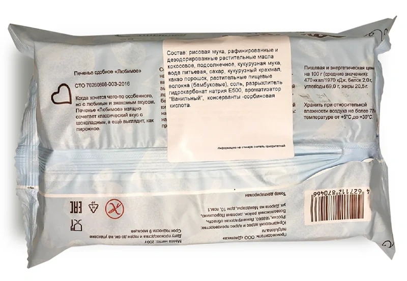 Печенье сдобное Диетика Любимое без глютена, 200 г станет отличным вариантом перекуса или десерта. Оно обладает приятным вкусом и нежным ароматом. Продукт отличается отсутствием глютена, поэтому подходит для диетического питания. Глютен – это сложный протеин, который негативно влияет на пищеварительную и иммунную систему. Безглютеновые продукты показаны тем, кто подвержен аллергии или нарушениям работы кишечника. Приятная текстура, аромат и нежный вкус делают этот десерт любимым лакомством покупателей всех возрастов.