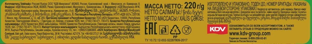 | Рекомендуемая температура хранения, C | от +13 до +23 |