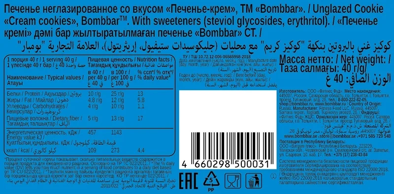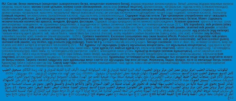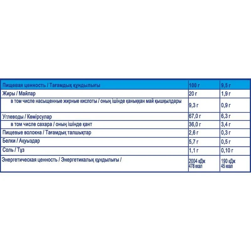 В составе десерта присутствуют натуральные овсяные отруби, которые способствуют улучшению функционирования пищеварительного тракта, и ржаная мука, снижающая уровень холестерина. Также добавлено растительное масло, богатое витамином Е, который является важным антиоксидантом для организма.