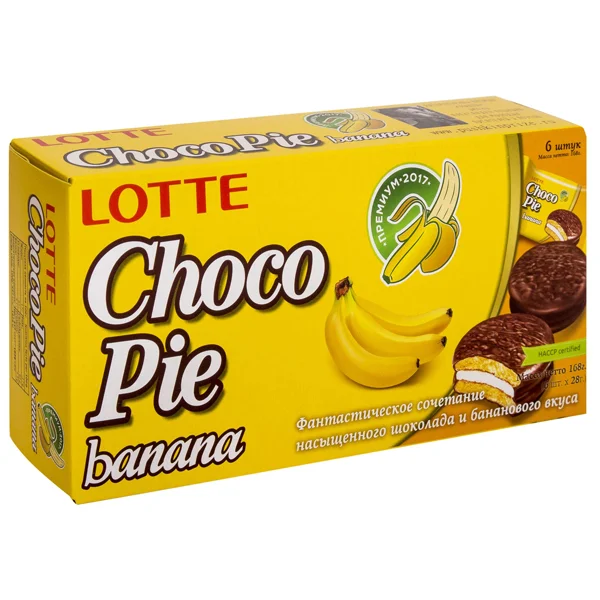 Печенье Lotte Choco-Pie банан, 168г, 6шт/уп