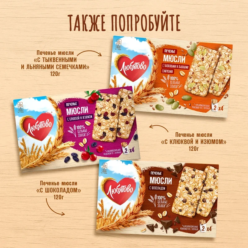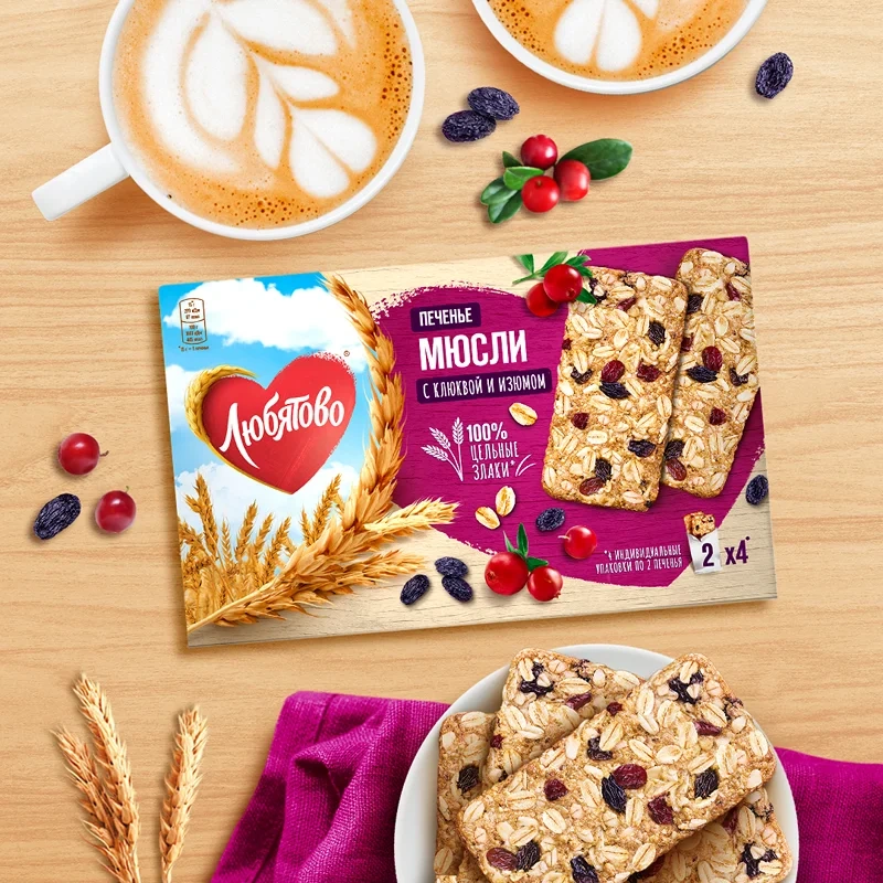 Печенье-мюсли с клюквой и изюмом — это особенное сочетание хрустящих овсяных хлопьев и аппетитных кусочков ягод. Продукт содержит в составе цельные овсяные хлопья, поэтому мы рекомендуем его для всей семьи. А благодаря наличию индивидуальной упаковки, вы можете наслаждаться этим вкусным и питательным перекусом в течение дня, где бы вы ни находились. Можно в Пост.