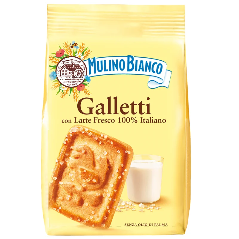 Сахарное печенье Mulino Bianco Galletti приготовлено на основе домашнего итальянского рецепта. Натуральное хрустящее итальянское печенье идеально подойдёт для завтрака или лёгкого перекуса, станет отличным дополнением к чашке чая, какао или кофе. Печенье не содержит красителей, усилителей вкуса и других искусственных добавок. Его также можно использовать при приготовлении различных десертов, тортов или других кулинарных изысков. Ароматное сахарное печенье Mulino Bianco с кристалликами сахара подарит отличное настроение и станет отличным дополнением к завтраку. Приятная тающая консистенция и в меру сладкий вкус делают лакомство отличным вариантом для питательного перекуса. Печенье хорошо сочетается с зелёным чаем, кофе, молоком. Рассыпчатый продукт понравится всем ценителям итальянских лакомств и поможет зарядиться энергией.