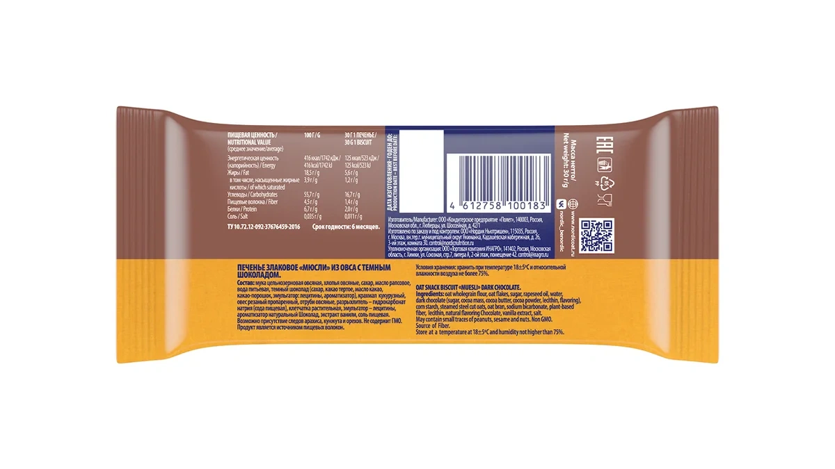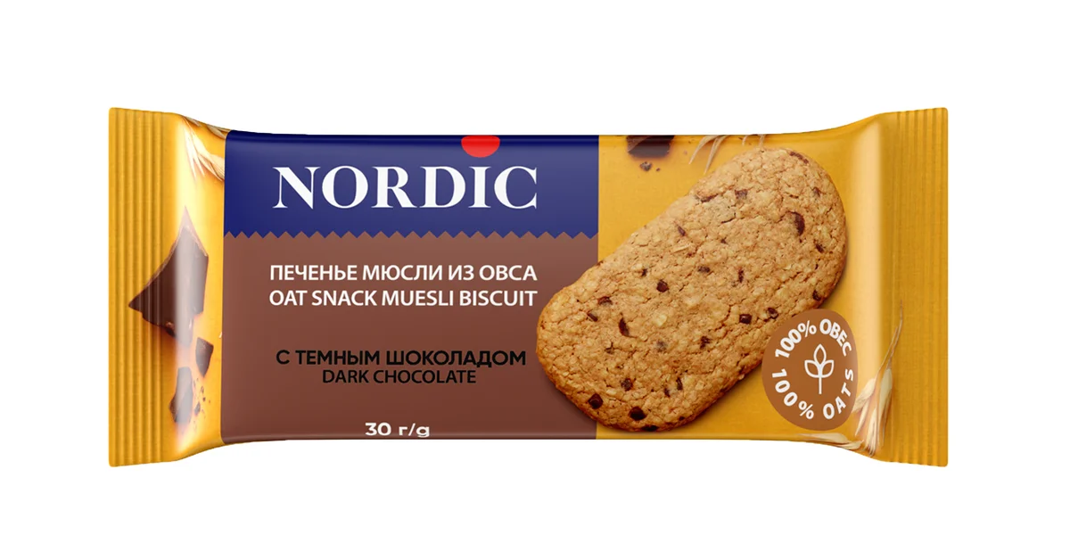 Печенье Nordic злаковое Мюсли из овса с темным шоколадом, 30г
