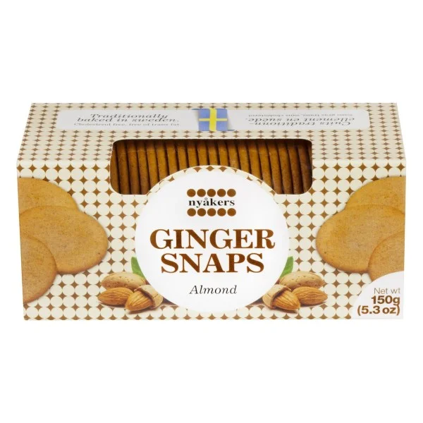 Сытное, с насыщенным ароматом специй хрустящее имбирное печенье со вкусом миндаля от шведской торговой марки Nyakers — отличный вариант как для неспешного чаепития, так и для быстрого перекуса. Тоненькие душистые ломтики тают во рту. Натуральный состав, чудесный вкус с ореховыми нотками, стильная дизайнерская упаковка — приобретайте в качестве подарка близким или просто побалуйте себя.
